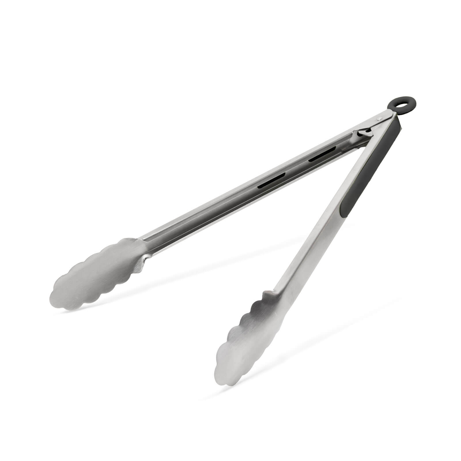 Ideális a grillezni kívánt húsok, zöldségek elkészítéséhez, forgatásához valamint saláták szervírozására. A hosszú nyélnek köszönhetően keze nem kerül a grill fölé. A rozsdamentes nemesacél nyél nem korrodálódik, a csúszásmentes gumi felület stabil, kényelmes fogást biztosít minden körülmények között. A grill- és salátacsipesz végeinek köszönhetően egyszerűen forgathatja meg az ételt vagy szedheti ki a tányérra. A végén lévő akasztólyuk ki/be mozgatásával könnyen rögzítheti és tárolhatja zárt állapotban.