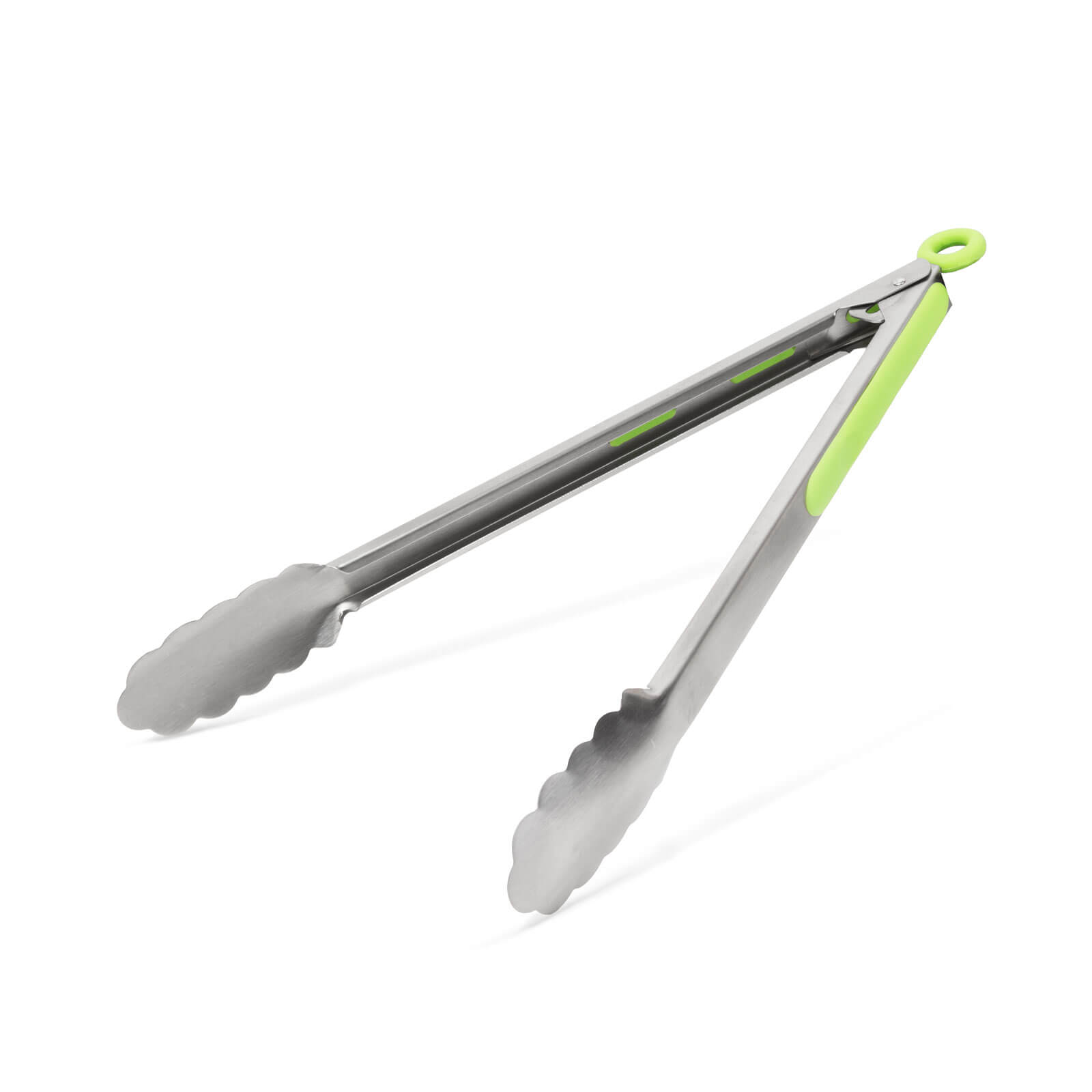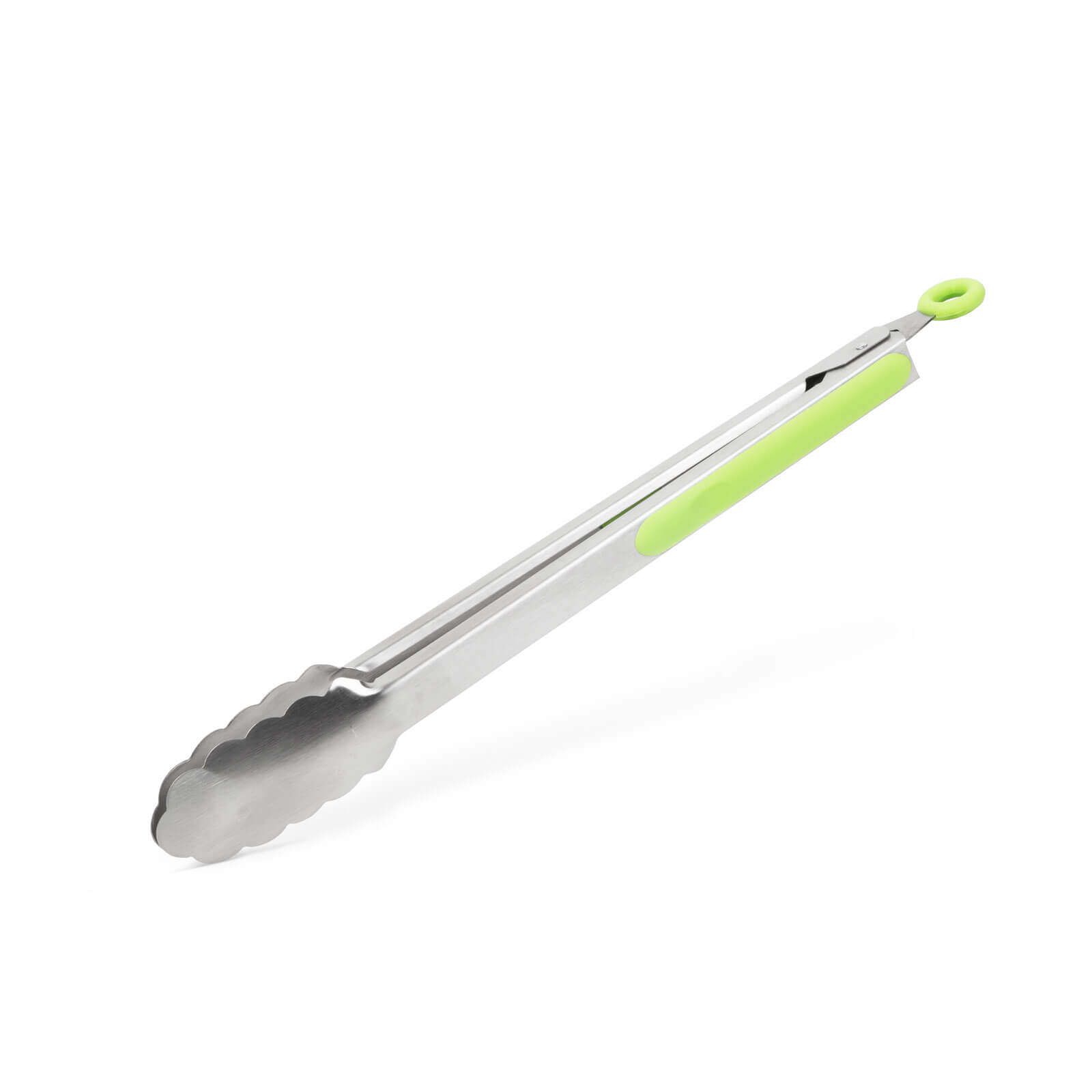 Ideális a grillezni kívánt húsok, zöldségek elkészítéséhez, forgatásához valamint saláták szervírozására. A hosszú nyélnek köszönhetően keze nem kerül a grill fölé. A rozsdamentes nemesacél nyél nem korrodálódik, a csúszásmentes gumi felület stabil, kényelmes fogást biztosít minden körülmények között. A grill- és salátacsipesz végeinek köszönhetően egyszerűen forgathatja meg az ételt vagy szedheti ki a tányérra. A végén lévő akasztólyuk ki/be mozgatásával könnyen rögzítheti és tárolhatja zárt állapotban.