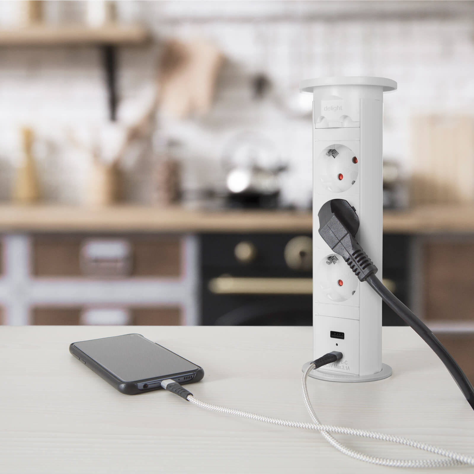 • Motorosan süllyeszthető rejtett elosztó irodai és otthoni felhasználásra, fém házzal, 3 db gyermekvédelemmel ellátott hálózati aljzattal, dupla USB töltőegységgel. A legtöbb felületbe és design-ba beleillő kialakítás, függőleges beépítési lehetőség mérsékelten vízhatlan kezelőfelület.