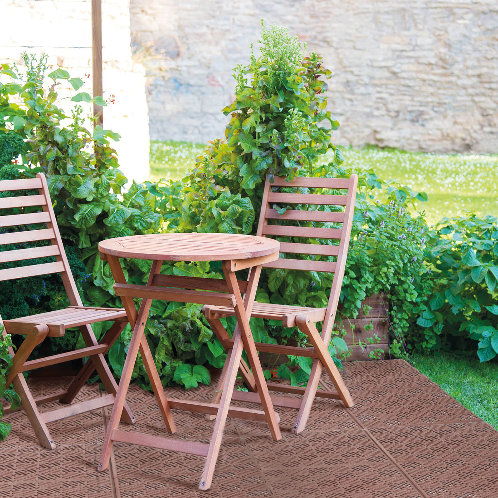 - Strapabíró műanyagból készült kerti padlólap, amely ideális lehet teraszok, grillhelyek, kerti ösvények, verandák burkolására. Rugalmas anyagának köszönhetően felveszi a földfelszín formáját, kiváló ütéselnyelő képességgel rendelkezik. A felületén elhelyezett apró bordázatnak köszönhetően biztonságos, csúszásmentes használatot biztosít még rosszabb idő esetén is. Időjárásálló anyagának köszönhetően az év bármely napján használhatja, nem szükséges felszedni rosszidő esetén. A felületén lévő lyukak lehetővé teszik, hogy a víz át tudjon rajta folyni, így nem alakulnak ki pocsolyák. A klikkes rendszernek köszönhetően könnyen és gyorsan egymáshoz kapcsolhatóak az elemek, így lerakása egyszerűen megoldható.