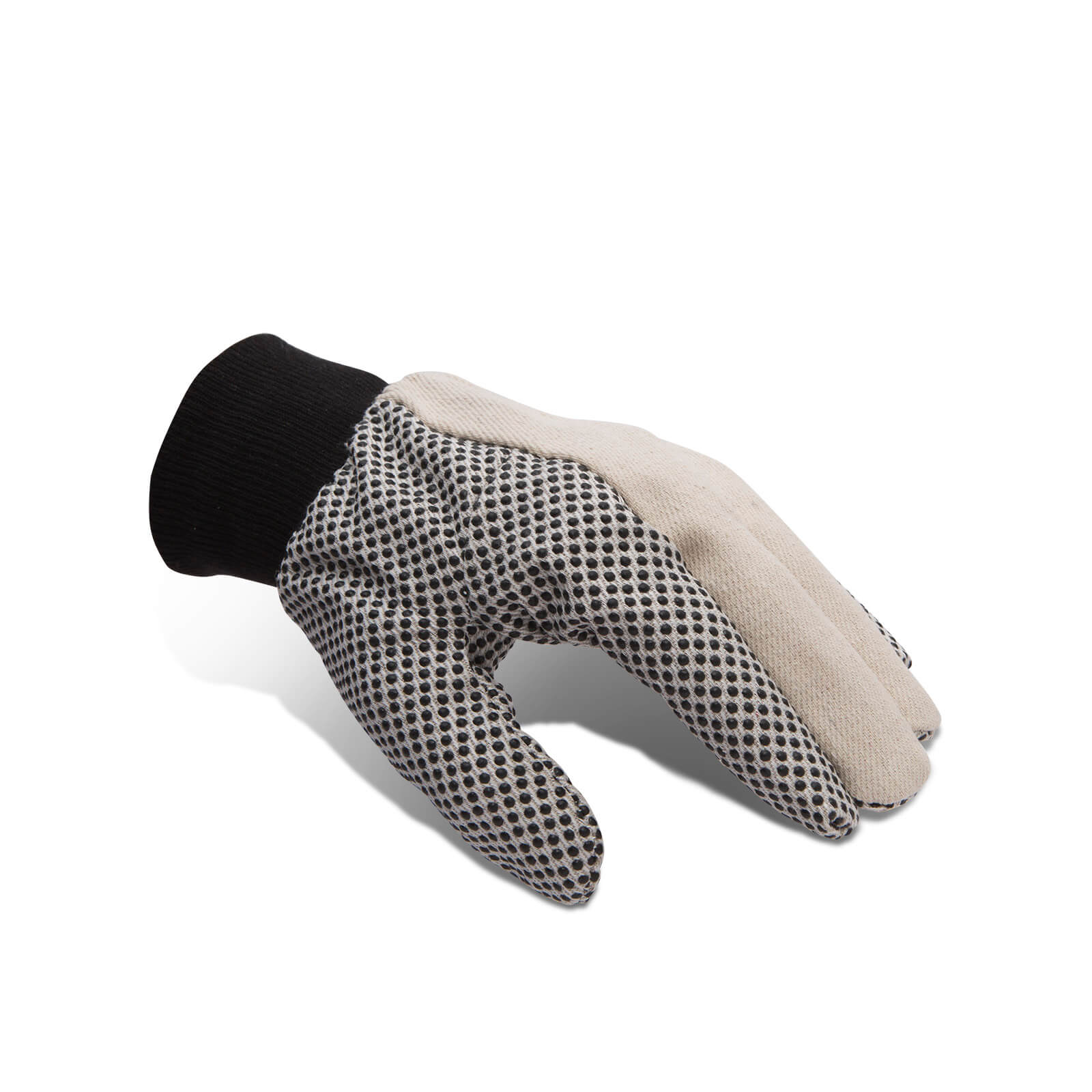 • Pamutból készült, gumis mandzsettájú kesztyű, csúszásmentes gumi pöttyözéssel a tenyerén.