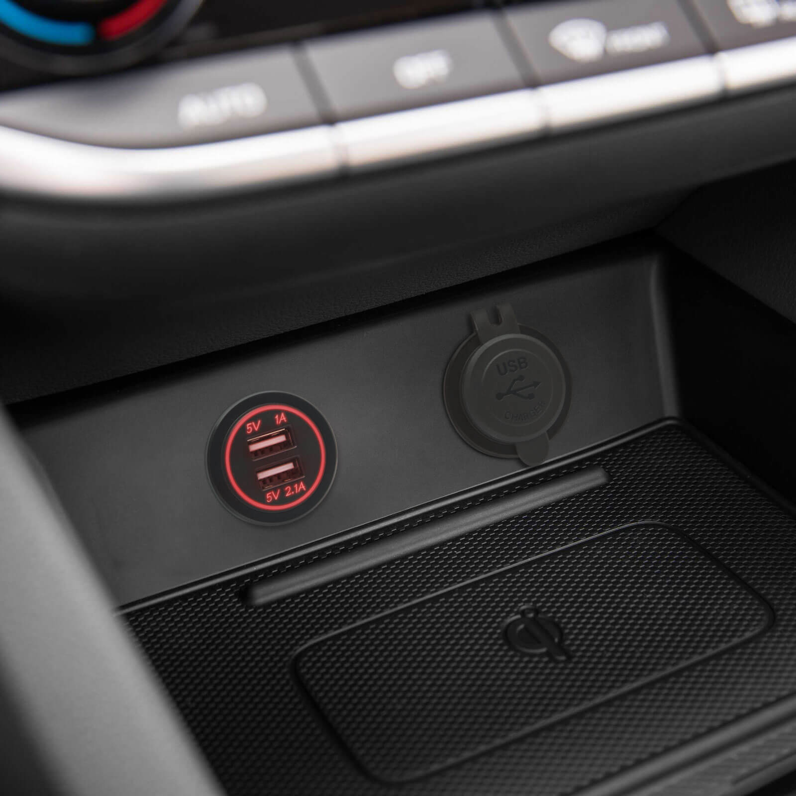 - Autós szivargyújtó helyére beépíthető USB aljzat. Használatával nincs szükség a szivartyújtóba dugható USB adapterre, az egész szivargyújtó aljzat cserélhető, ezáltal megelőzhetőek az esetleges érintkezési hibák. A piros világítás jelzi, hogy feszültség alatt van az aljzat, továbbá sötétben elősegíti az USB kábel csatlakoztatását. A gumi zárókupak megakadályozza, hogy por, szennyeződés jusson az USB portokba, valamint használaton kívül a piros LED világítást eltakarja. Ez a zárókupak tetszés szerint eltávolítható.